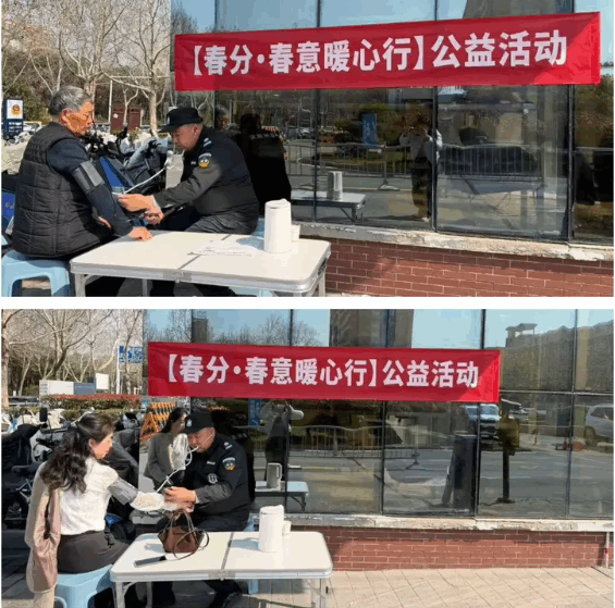 活动现场,春意融融。队员们化身暖心志愿者,为过往群众免费测量血压,提醒大家关注血压。与此同时,队员们开展安全宣传,结合春季特点,向群众讲解防火、防诈骗及安全用电知识,用朴实的话语筑牢日常生活的“安全堤坝”。