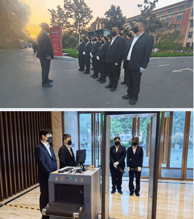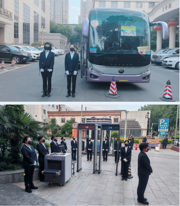 源头安检点位分散在多个酒店,分布范围广、调度难度大。集团党委提前部署,制定“一酒店一方案”,每个点位指定一名负责人,负责现场指挥与协调;提前细化安检流程,明确引导、验证、手检、开包等各环节分工;针对突发情况预设应急预案,并组织全员岗前培训。全体队员服从指挥、协同作战,确保了各点位同步高效运转,无一疏漏。