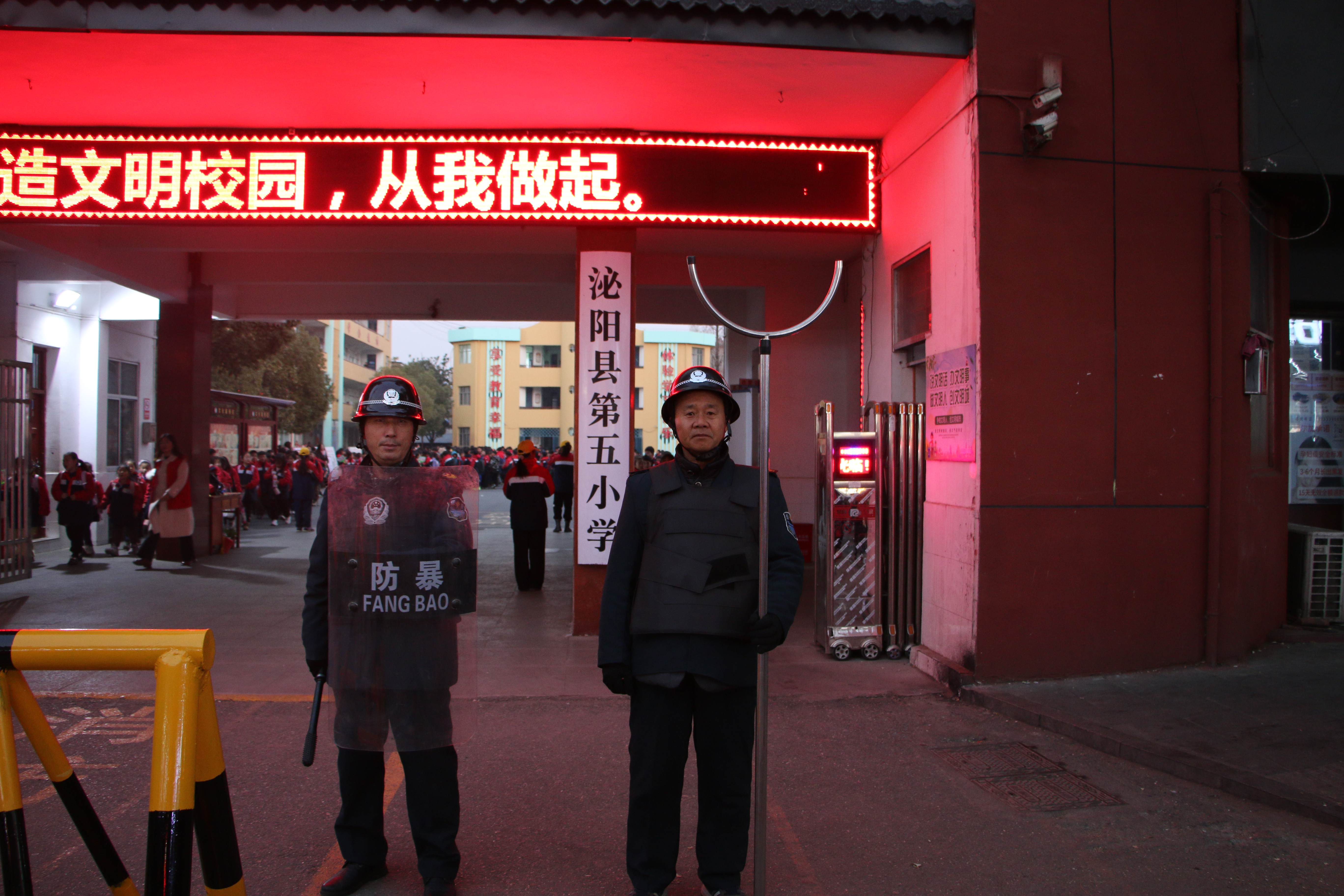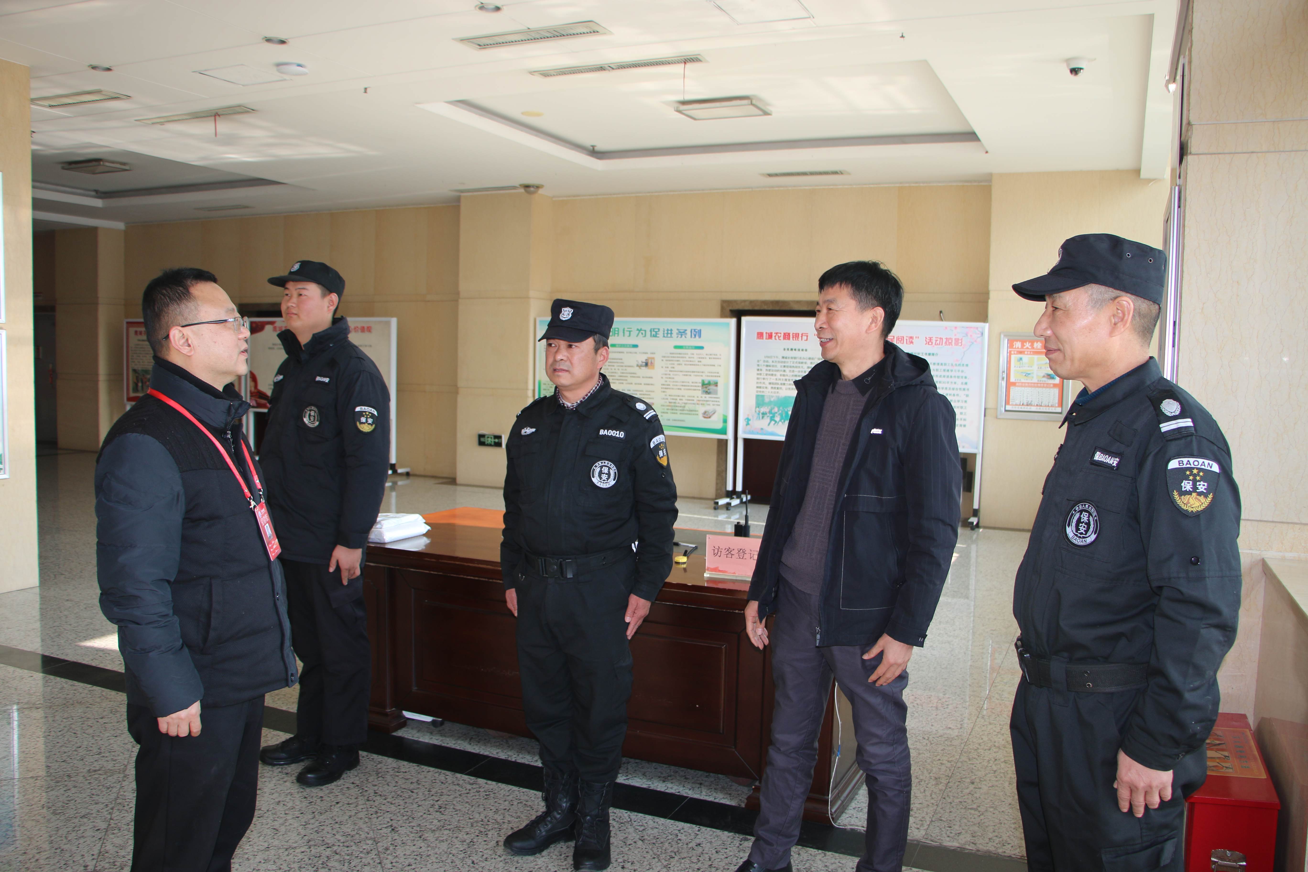平顶山农商行与保安队员交谈