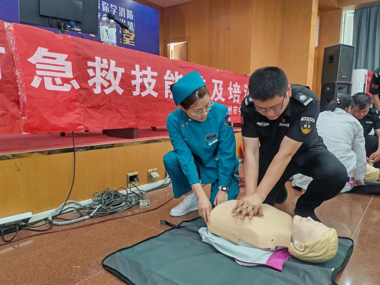 为扎实推进消防安全重点领域“大排查、大起底、大整治、大培训”工作开展,切实提高保安队伍安全生产管理能力和消防安全技能水平。2024年5月10日中原保安组织全体骨干队员开展“急救及消防安全技能培训会”。