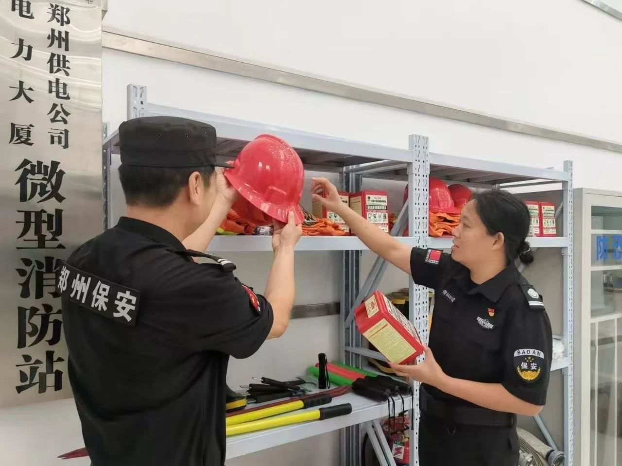 为了加快推动“保消一体化社会化”工作进程,切实发挥基层防控力量在消防工作中的作用,7月24日,中原保安在郑州市供电公司岗点,组织开展消防救援演练。