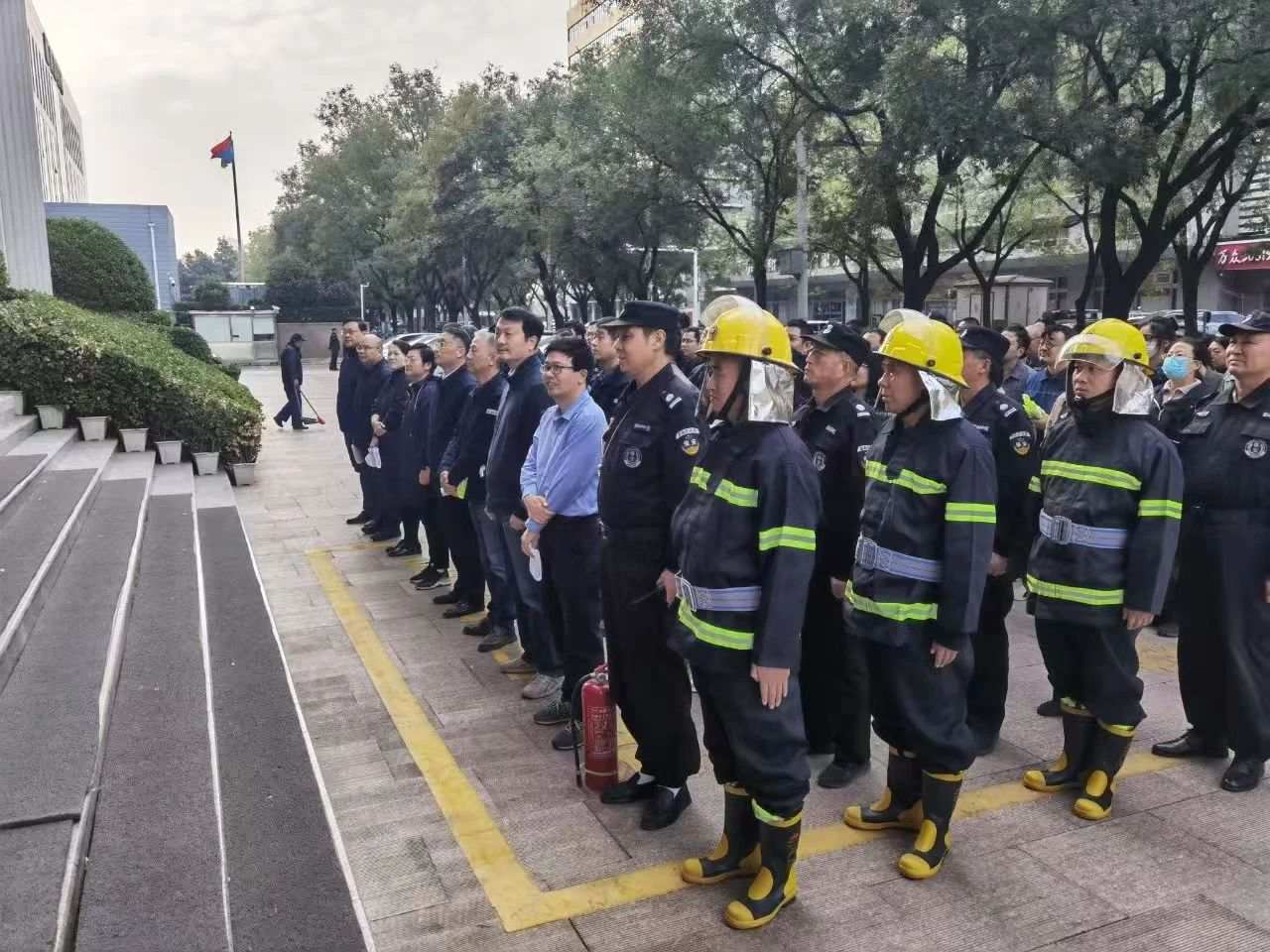 2024年11月9日是第33个全国消防日。为深化“保消一体化”工作,提升保安员消防安全意识及对突发火灾的应急处置水平,强化被保单位消防火自救逃生能力,加强安全意识宣传。2024年11月8日,郑州保安集团中原分公司与国网郑州市电力公司,分别在两个消防重点岗点部位连续组织两场开展消防疏散灭火演习活动。
