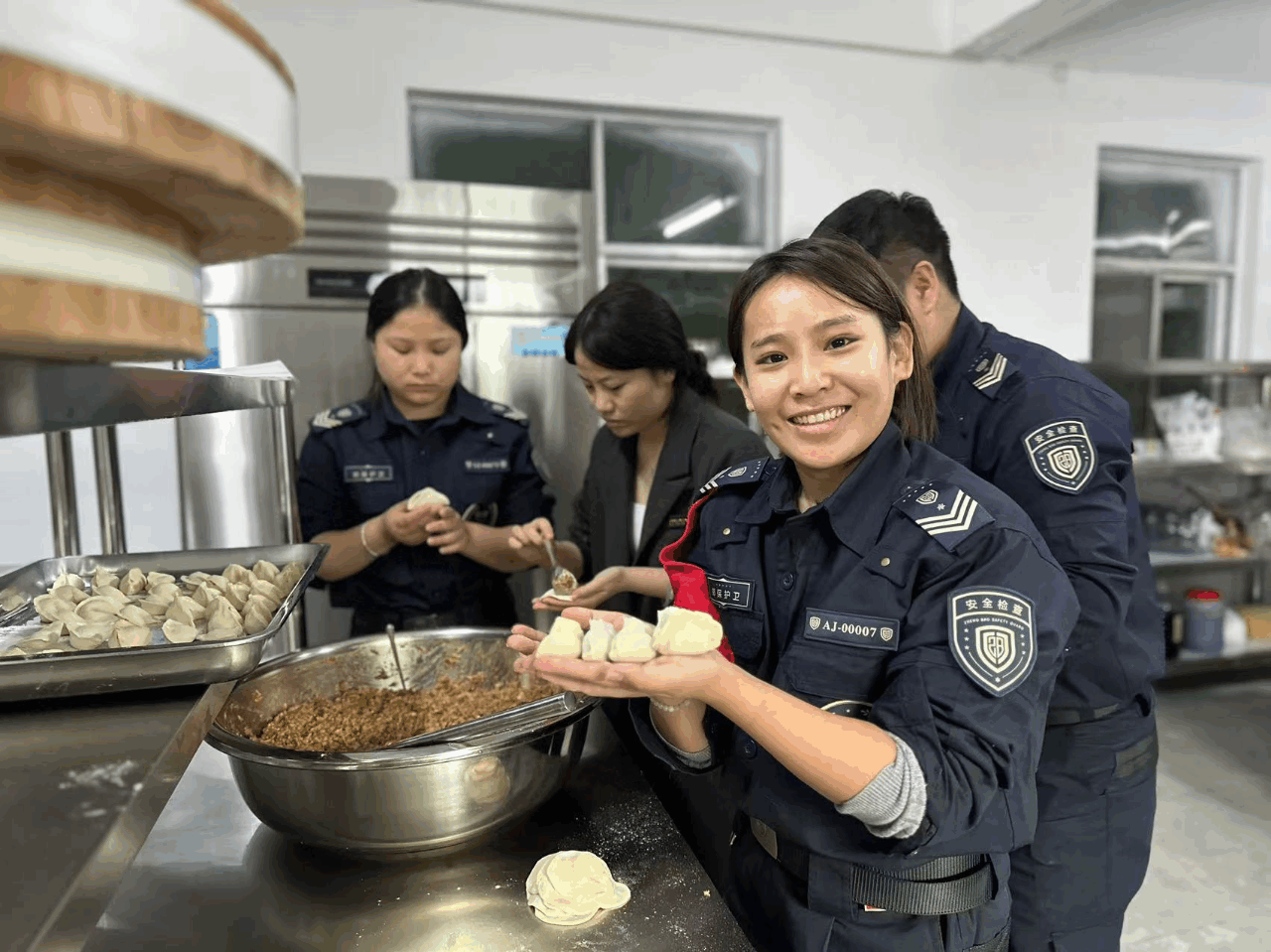 日常生活:干净整洁,处处真情。一线执勤人员工作之外会积极参与到生活区的保洁工作中,认真确保生活区环境的整洁与卫生,良好习惯细处养。当有新队员加入时,他们会主动举行欢迎仪式、谈心谈话等,让新队员感受到家的温暖。在节假日,他们还会聚在一起包饺子,共享节日的欢乐,团队友好氛围浓厚。