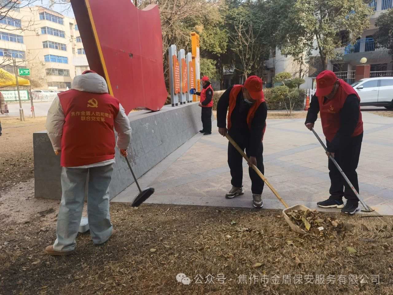 为进一步提升入党积极分子的党性修养, 焦作市金盾保安服务有限公司人防和物业联合党支部结合集团公司党建工作的实际情况,按照集团公司党委《关于开展“入党前先做志愿者”活动的通知》要求,于1月10日下午14时30分,组织集团公司党委所辖四个党支部的入党积极分子志愿者,前往丰收小区开展卫生清扫志愿服务活动,旨在通过行动诠释奉献和担当,为小区带来温暖和生机。