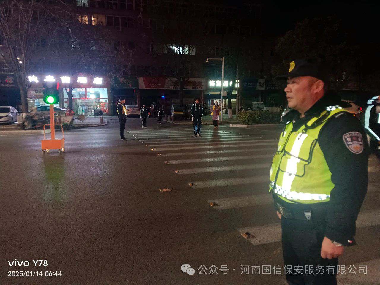 2025年1月13日至15日,国信保安党支部书记、总经理郭纪周连续多日来到保安一线,亲自参与护学岗勤务工作。