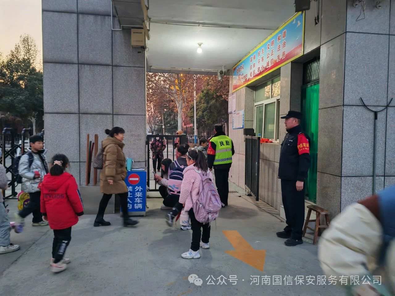 值此双节临近,为给校园师生营造一个安定祥和的节日氛围,国信保安积极响应公安机关“加强校园安全、维护校园及周边治安持续稳定”的工作部署,持续开展护学岗行动,为校园安全筑牢坚实的屏障。