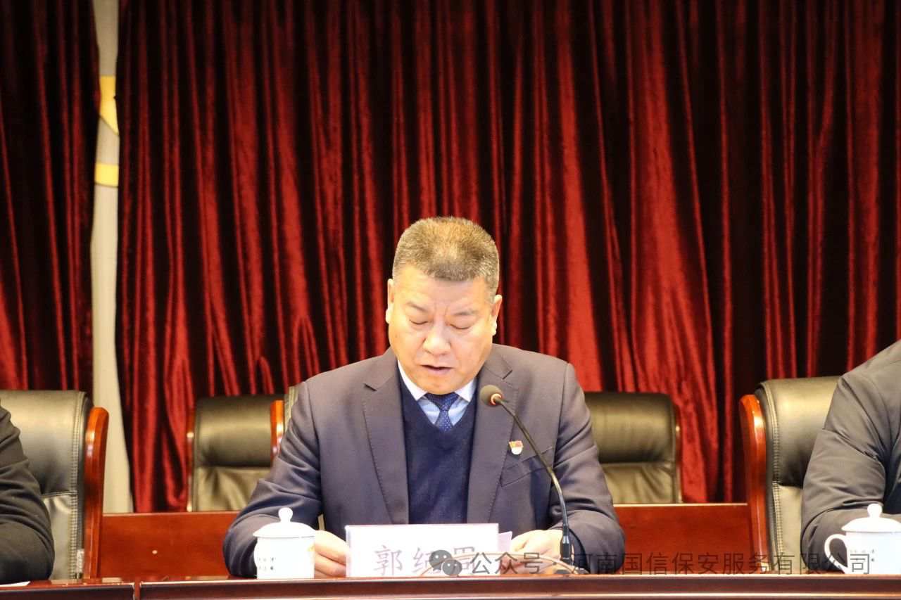 2025年2月8日上午,河南国信保安服务有限公司2024年度总结暨表彰大会在济源市总工会隆重举行。济源资本运营集团有限公司党委副书记、副总经理、国信保安董事长冯璐出席大会。