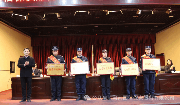 荣获2024年度国信保安“先进集体”荣誉称号的押运中心,荣获2024年度国信保安“优秀保安班组”的武装押运建行中队、联洋建材城驻勤保安班等5个保安驻勤单位和冯向阳、杨龙波两名优秀党员以及刘佳楠等30余名保安先进工作者受到表彰。