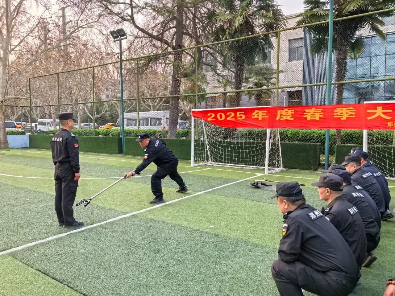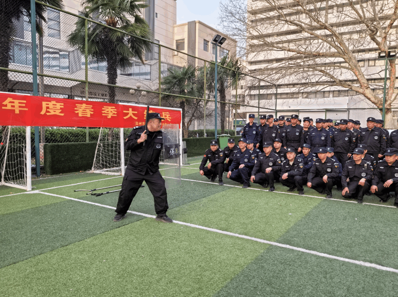 为进一步提升保安队伍专业素质和综合能力,增强全体保安队员实战技能和服务水平,根据郑州保安集团《关于开展春季大练兵活动实施方案》文件精神及活动要求,中原分公司落实"向训练要素质,向训练要纪律作风,向训练要服务效益"整体工作部署,通过强化组织领导,制定详细实施方案,周密部署并严格落实工作要求,系统全面开展保安队伍服务意识、理论知识、业务技能、队伍管理、队伍素质等方面练兵培训工作。3月23日下午,郑州保安集团中原分公司组织班长以上管理人员、骨干队员共100余人,开展2025年度春季大练兵活动。