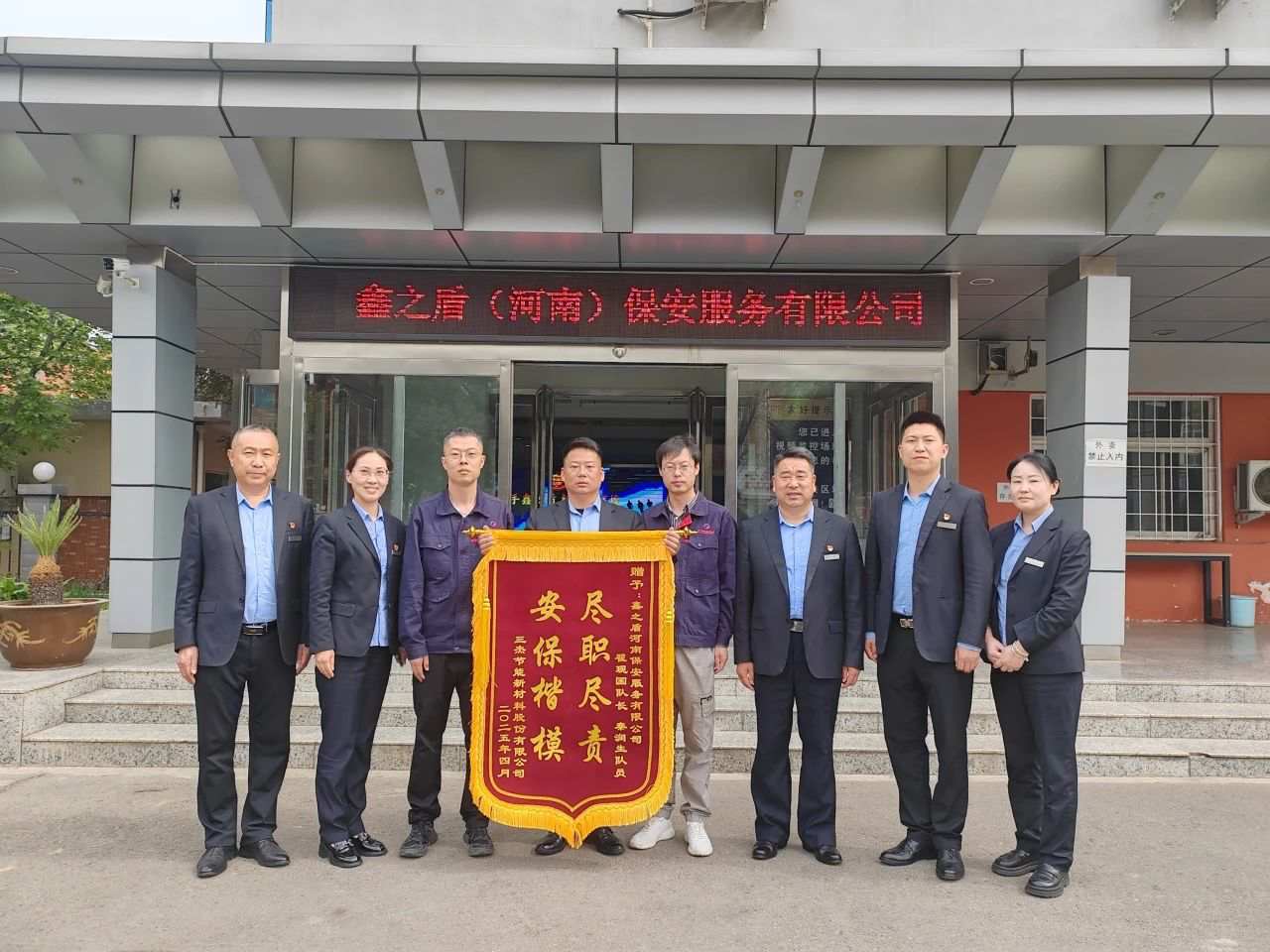 一面锦旗,承载着沉甸甸的信任;一次守护,诠释了夜以继日的责任。近日,我公司保安队员因快速处置突发火情,成功保护客户单位财产安全,获得甲方单位专程送来的"安保楷模尽职尽责"锦旗。