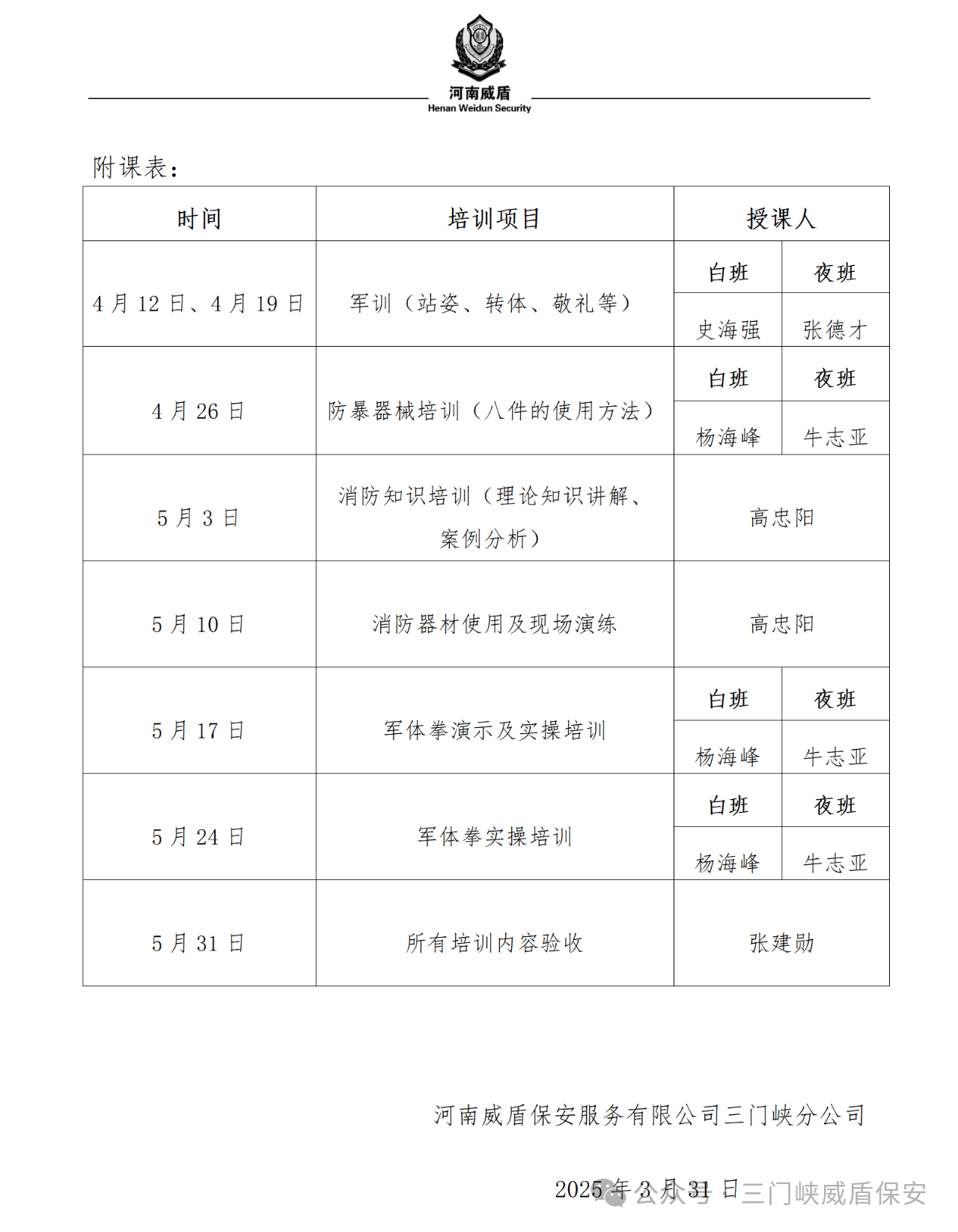 启航新征程 练兵展风采——威盾保安三门峡分公司开启春季大练兵