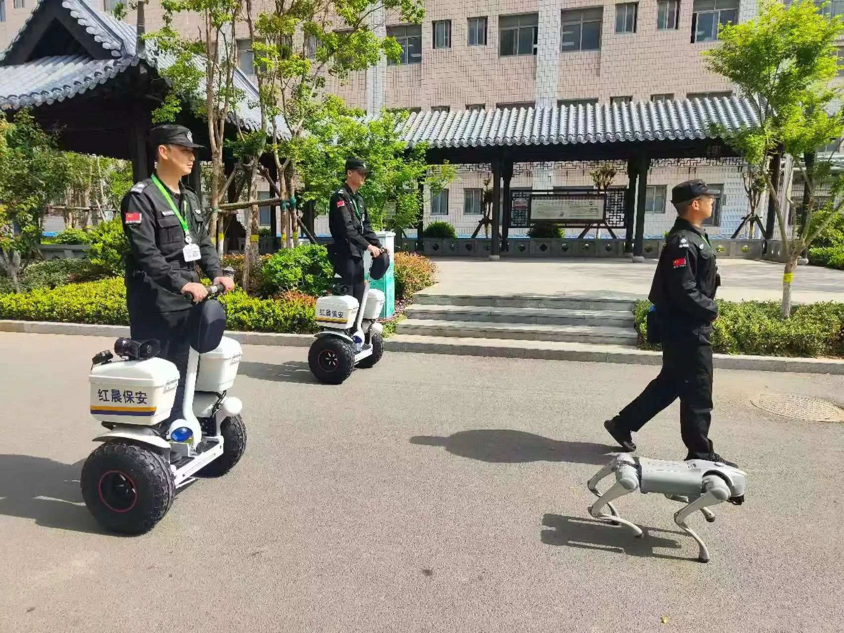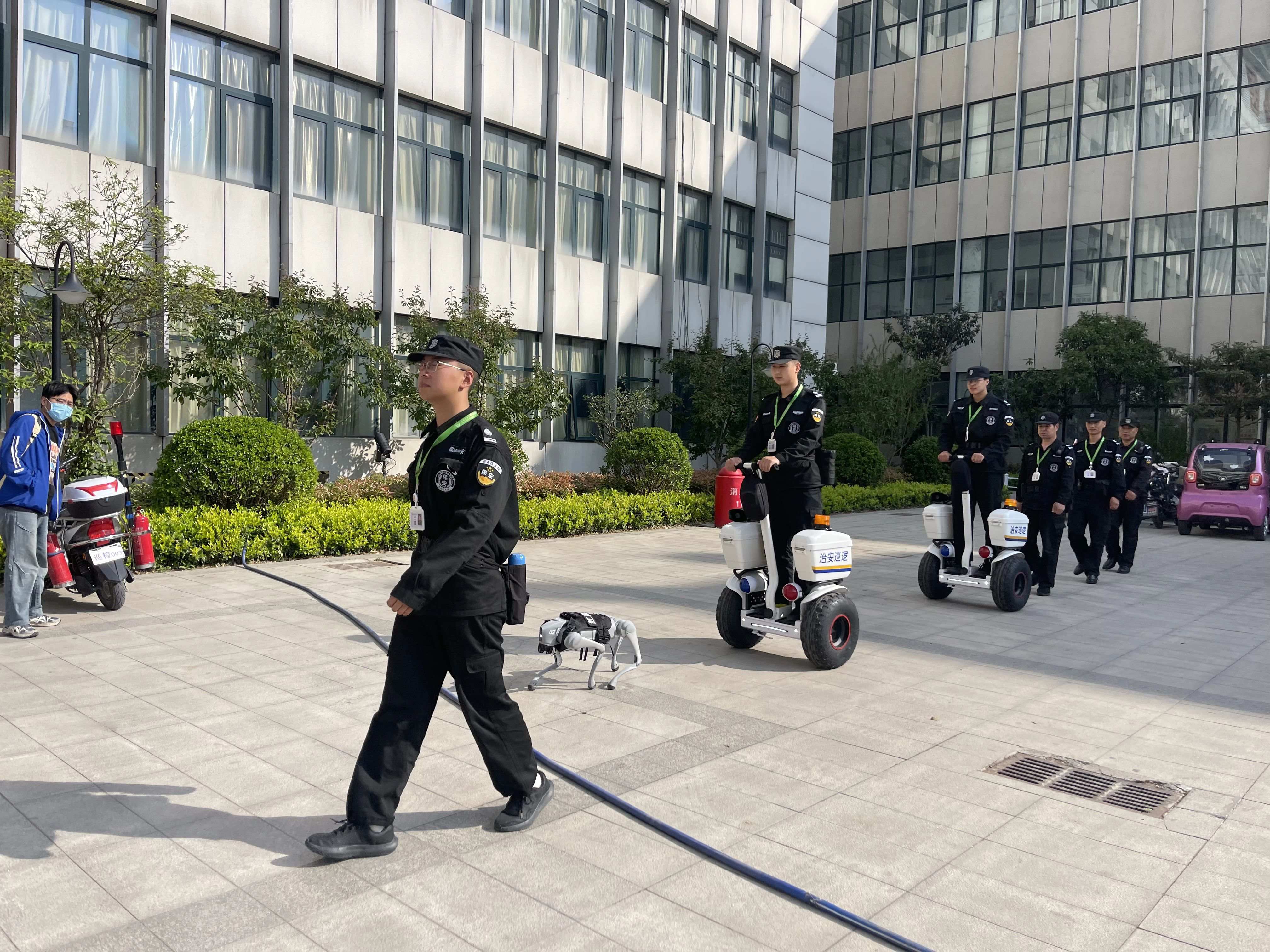 4月22日,红晨保安公司增添新设备新成员——巡逻平衡车与智能机器狗,该设备在新医一附院首次亮相,为医院安保工作注入科技新力量。