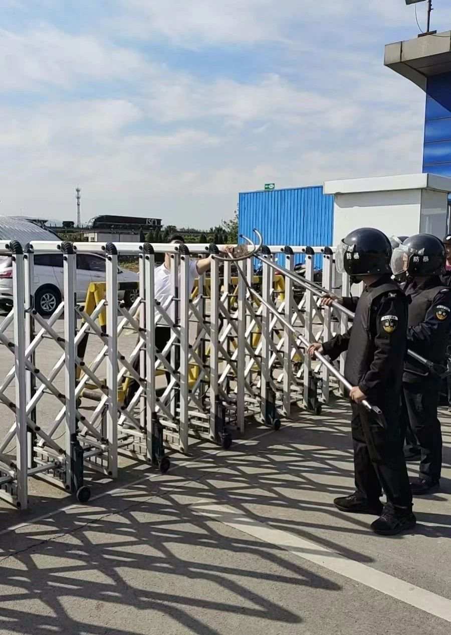 演练现场,“歹徒”企图突破园区门禁。安保人员第一时间迅速启动防恐应急预案。安保人员携带防暴盾牌、钢叉、警棍等装备,30秒内形成第一道拦截防线。面对“歹徒”的激烈反抗,队员们运用战术队形步步紧逼,成功将其制服并转移至安全区域,整个过程行云流水,展现出高效的应急处置能力。