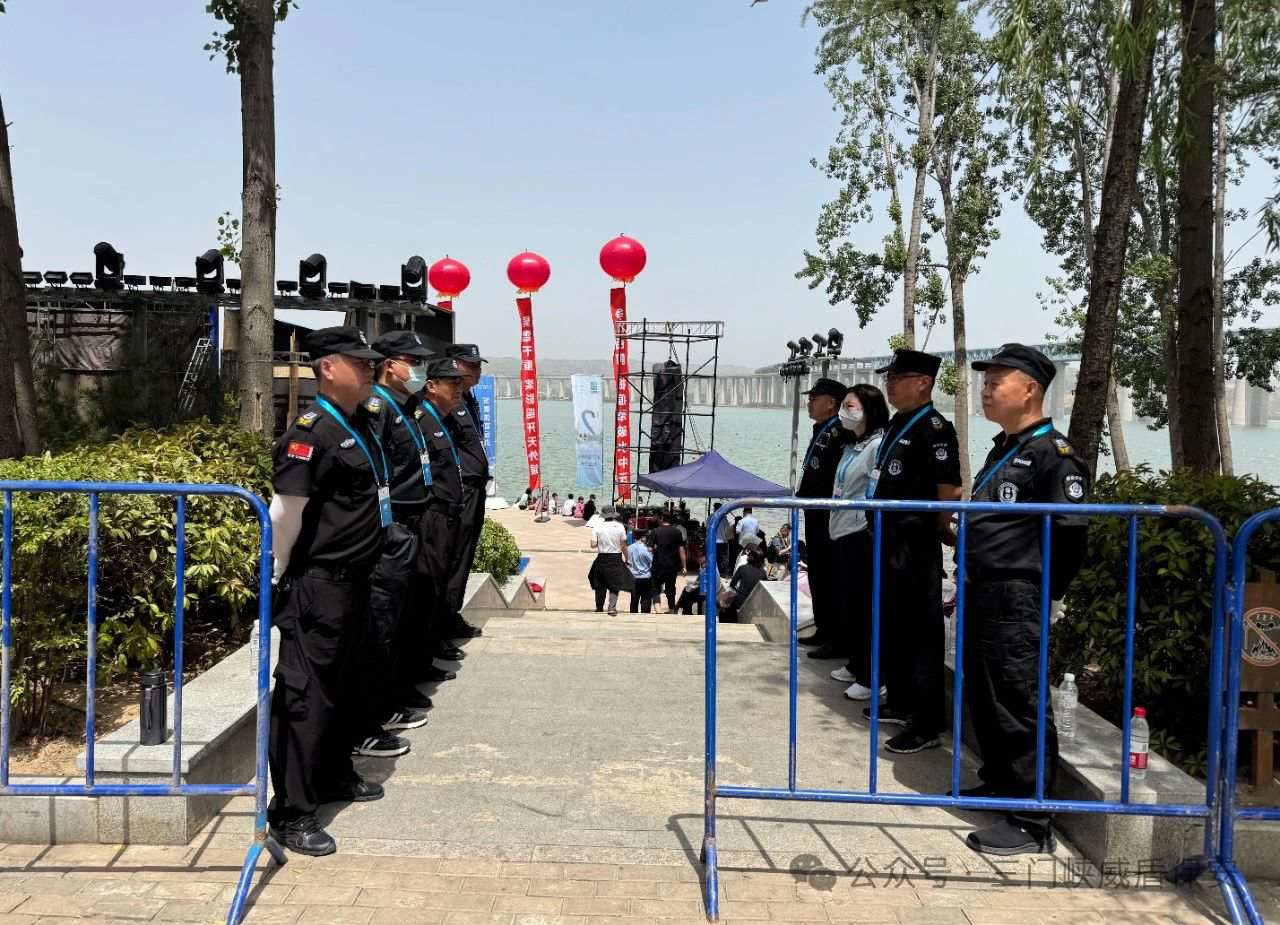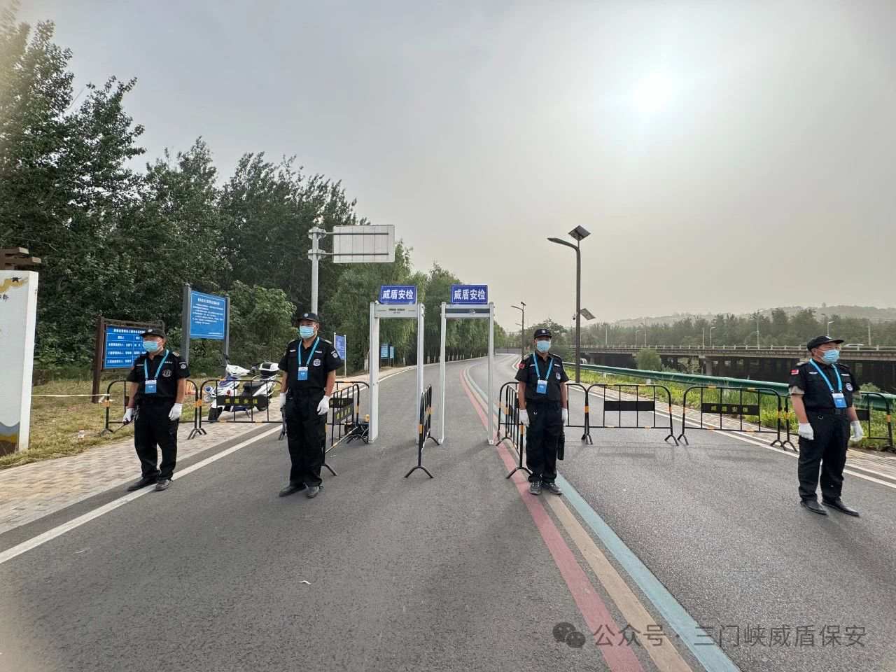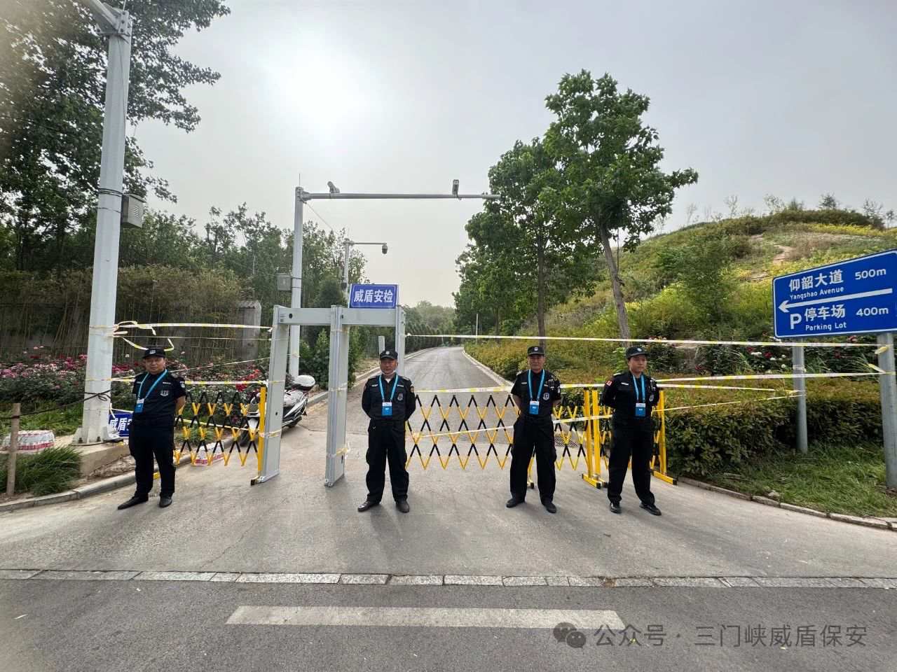 在长达十三个多小时的执勤中,威盾保安三门峡分公司总经理侯海霞率先垂范,亲自参战,科学调度、靠前指挥,面对烈日暴晒所有参战执勤保安员毫无怨言,始终以饱满热情的状态坚守岗位,保持标准站姿文明执勤在守护平安的“赛道”上,与选手们一样“全力以赴”,发扬不怕苦、不怕累、顽强拼搏的精神,积极疏导车辆、服务参赛选手和观赛群众、提醒过往车辆减速慢行,引导游客安全入场,确保了活动期间周边地区和场地治安平稳有序。