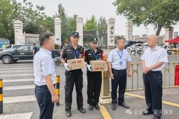 为切实做好高考期间安全保障工作,确保考生拥有安全、有序的考试环境,6月7日上午,公司领导班子深入市区各高考考点,实地检查督导高考安保工作,并亲切慰问坚守一线的执勤保安员,为他们送去防暑降温物资和公司的关怀问候。