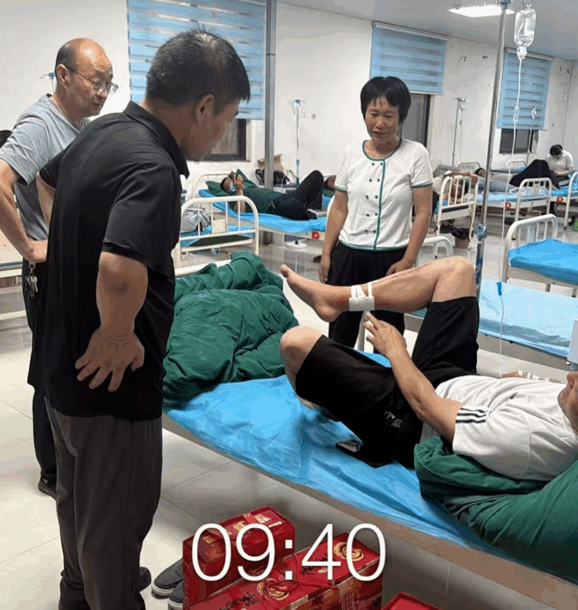 2025年6月18日上午,封丘县金盾保安服务有限公司总经理张付顺、副经理邢红平、人防二大队长曹新胜、队员杨亚楠一行4人,前往封丘县人民医院看望了交通事故腿部受伤保安员康思华,向他表示深切的问候,并送去慰问品。