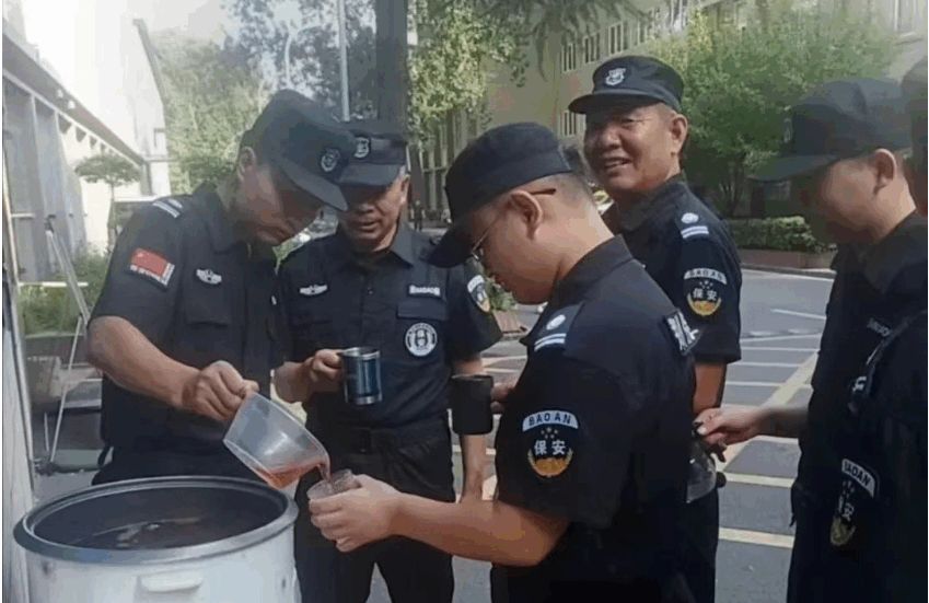 除了慰问活动外,公司还积极协调为岗点配备了电冰箱、遮阳伞等防暑设施,每日为队员熬制解暑绿豆汤,并发放了板蓝根、清凉油、藿香正气水等防暑物品,以及血压计、速效救心丸等急救物品。同时,结合岗点实际优化排班机制,灵活调整高温时段执勤模式,为一线队员筑起夏日安全防线。