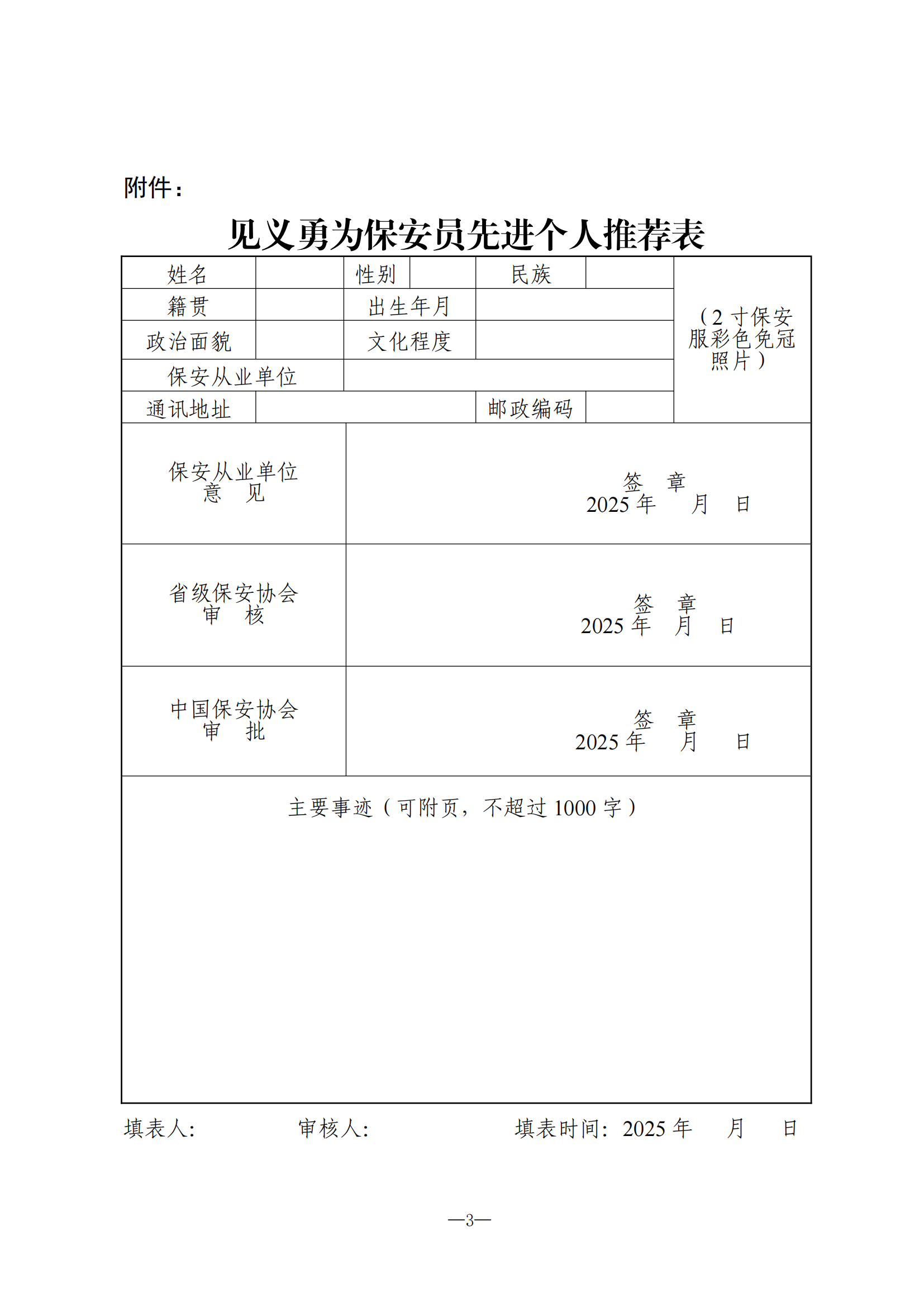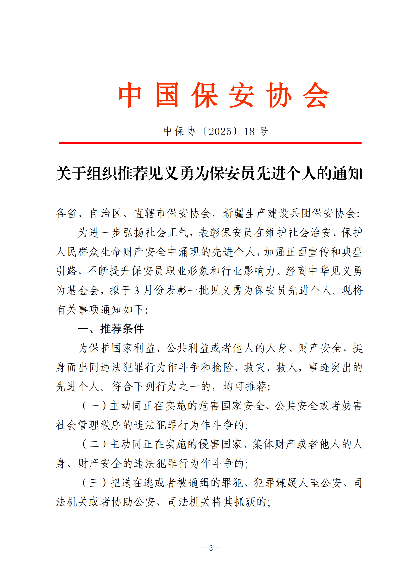关于转发中国保安协会《关于组织推荐见义勇为保安员先进个人的通知》的通知