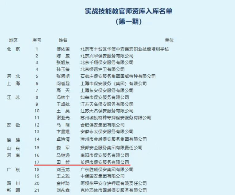 恭贺长垣保安田哲、中原保安巩志远入选中国保安协会实战技能教官师资库