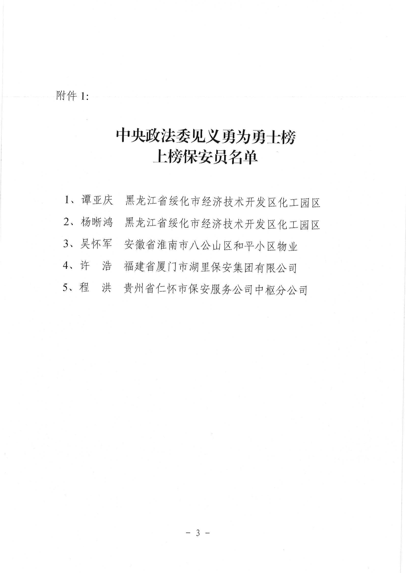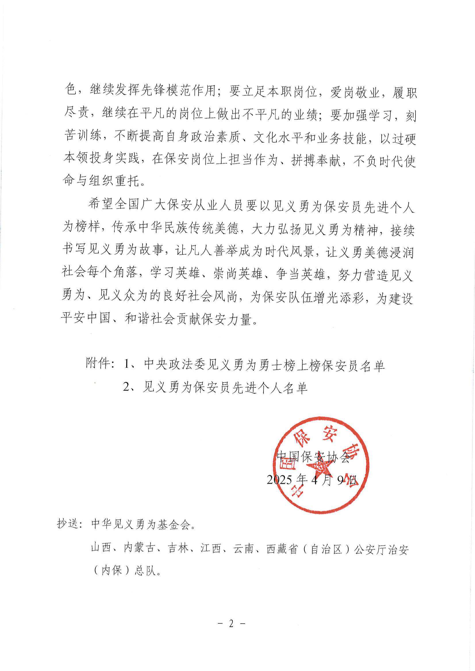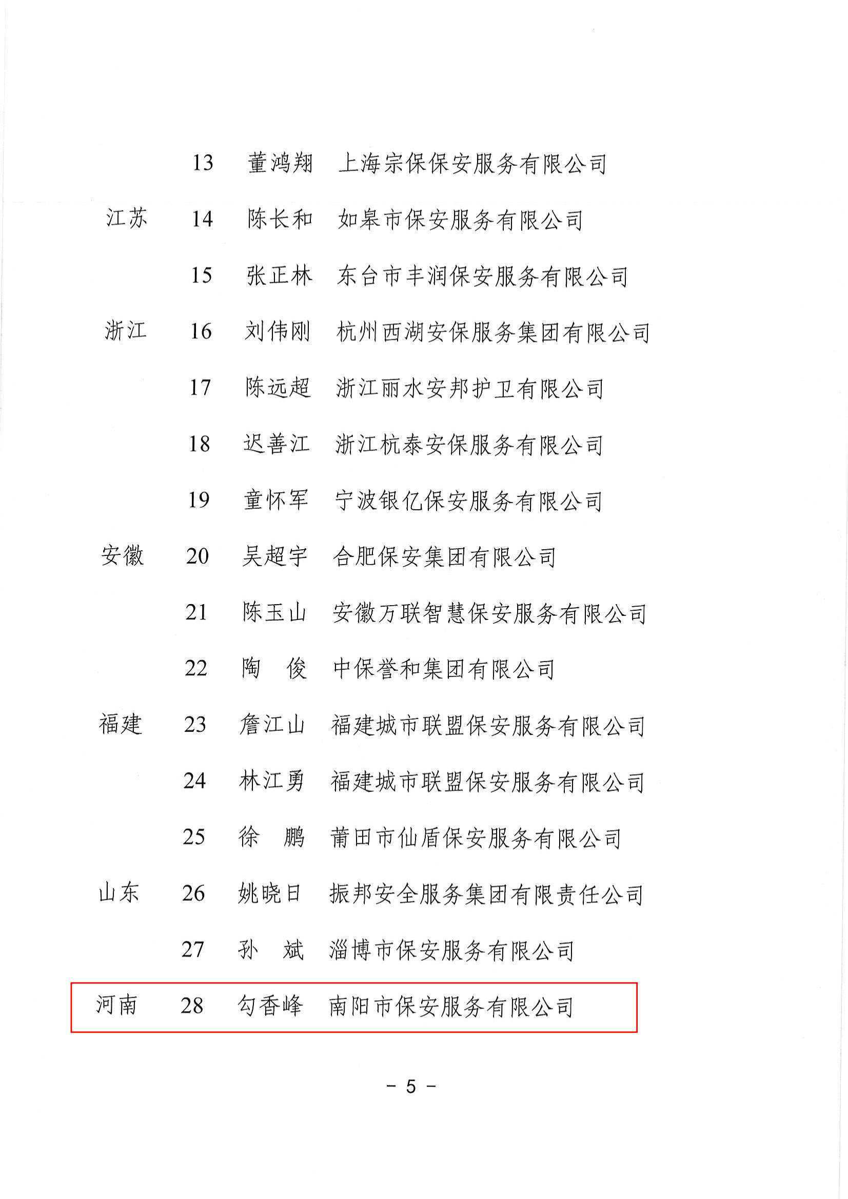 热烈祝贺见义勇为保安员勾香峰受中国保安协会通报表扬