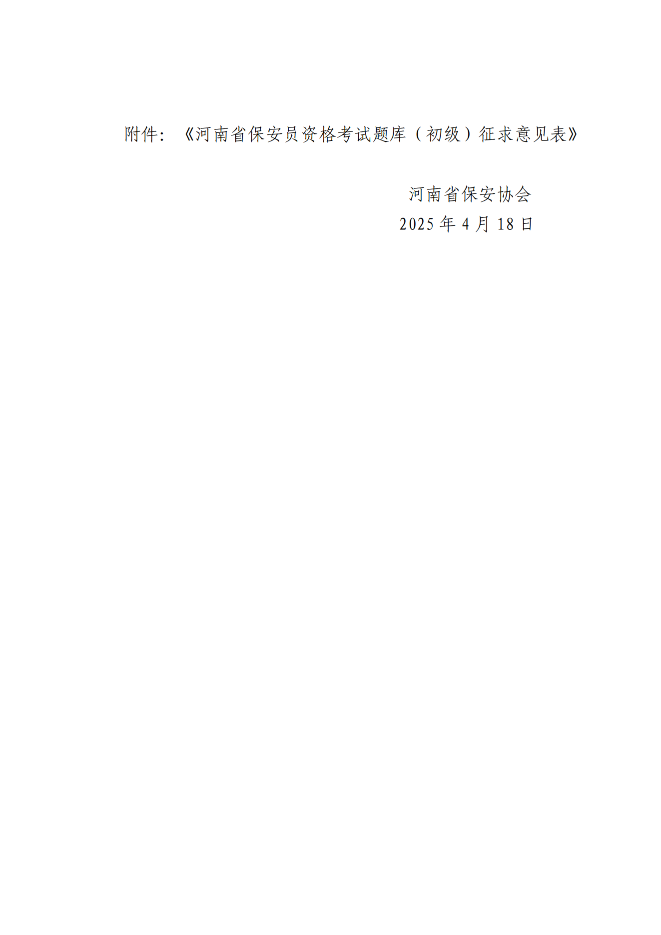 关于征求全省保安员资格考试题库(初级) 意见的通知