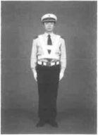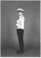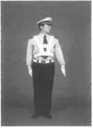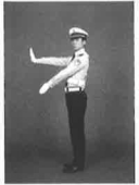 (3)左臂回位至不超过裤缝,面部及目光保持处于左方45度,手臂完成第一次摆动。