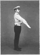 (5)收右臂,面部及目光转向前方,恢复立正姿势。