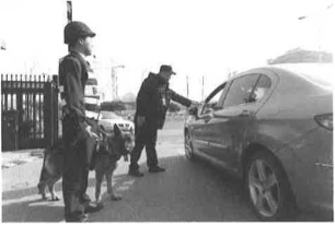 对于事先有可靠情报的物品查验,待拦截特定人、车之后,告知驾驶员打开车窗,出示驾照等相关证件,按保安携犬规定及程序查验证件(见图2-21)。