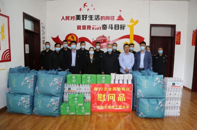 当天,南阳市残疾人联合会为该公司的残疾职工送去20套蚕丝被、20箱饮用水、一箱医用口罩等爱心物品。
