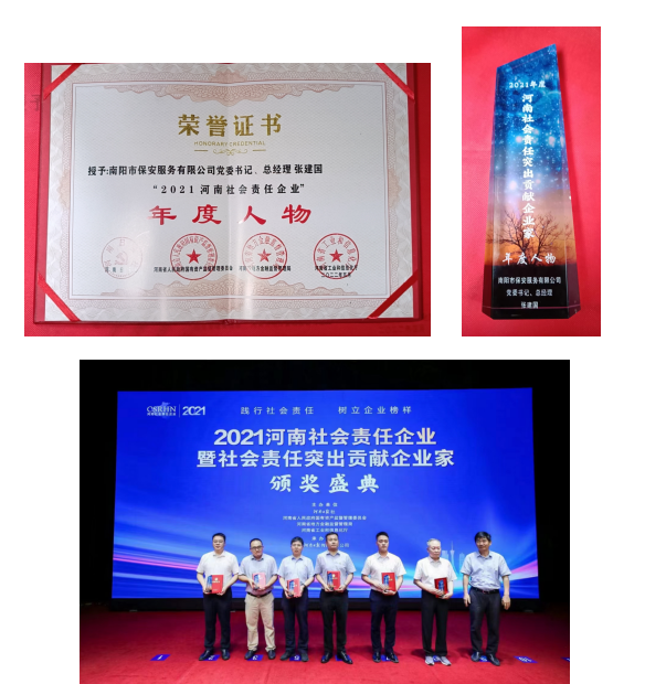 南阳市保安服务有限公司党委书记、总经理张建国被评为“2021河南社会责任突出贡献企业家”国有企业年度人物