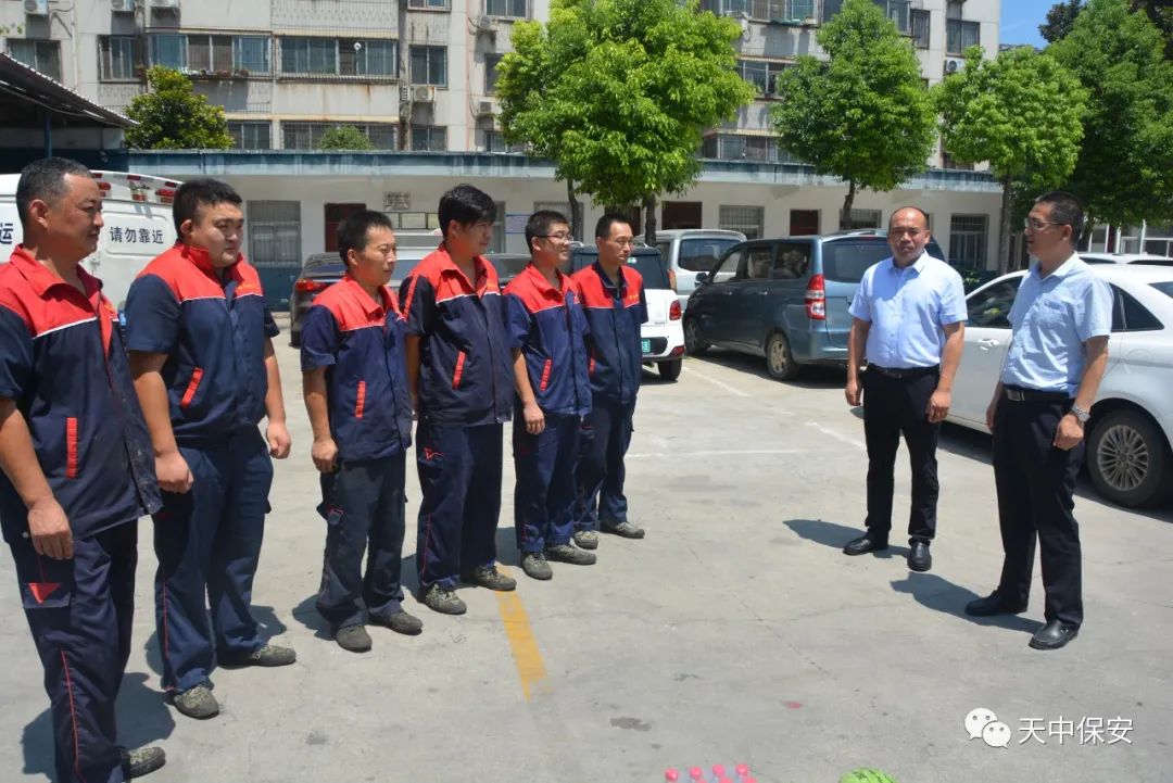 烈日当空,骄阳似火。近期我市迎来持续高温天气,8月11日上午,驻马店市保安服务有限公司总经理张建辉,公司党总支副书记魏炜,副总经理邓继国、张延春,与公司机关、分公司机关相关人员一起,先后前往高铁站辅警岗点、中心医院执勤岗点、市农行押运中队、车管所执勤岗点、公司修理厂和技防分公司技术部等基层单位看望慰问一线员工。
