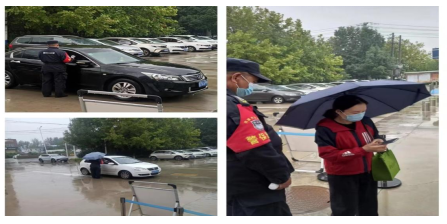 10月15日15:20分,来中心医院做核酸检测人员突然增多,执勤保安队长王风和队长及时安排队员维持秩序,防止人员过度密集。