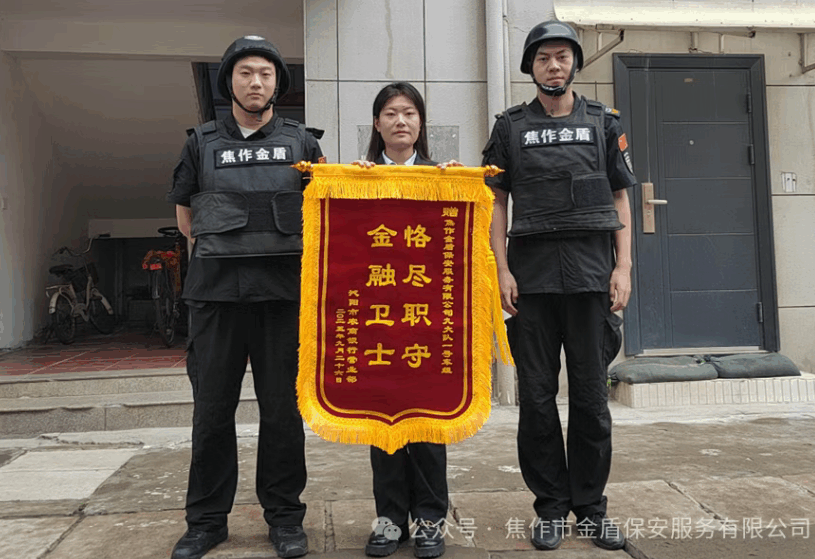 10月5日上午,焦作金盾押运部沁阳守押大队一号车组,因长期恪尽职守、以专业担当守护金融安全,在长期保障客户资金安全运输中展现出高度的专业素养与责任担当,获营业部主管领导赠予“金融卫士,恪尽职守”锦旗一面,以表感谢。