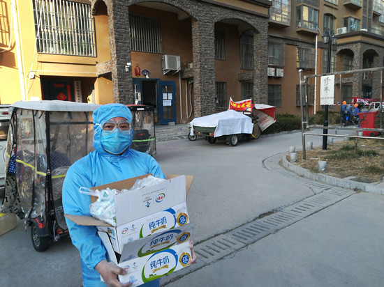 “这个时候,我不上,队员该怎么想?我必须让队员心里有底,让他们安心在这里工作。”邓红军说到做到。下午4时许,他和小区一名物业服务人员在规定时间,戴上口罩、护目镜,穿上简易防护服,为住户送去牛奶、蔬菜等物品。那些在家隔离的居民,看到有人冒着被病毒感染的风险给自己送来生活用品时,特别感动。