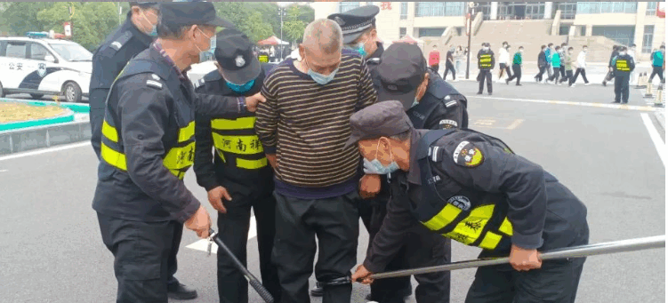 一名手持“凶器”的“歹徒”突然冲入门岗,拟闯入校园行凶