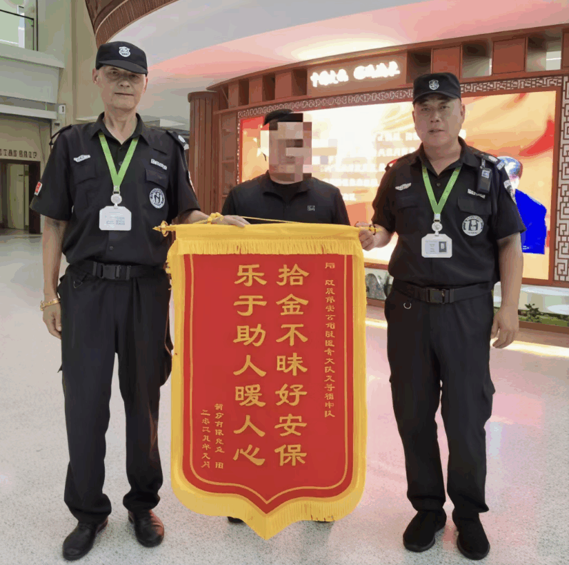 为确保手机物归原主,郭队认真核实失主身份,通过指纹开锁验证身份,确认正确无误后,将手机交还。失主拿到失而复得的手机,十分感动,为表达感谢,下午特意送来一面锦旗送到保安队,称赞队员们拾金不昧、认真负责的精神。 在阴雨的日子里,保安队员的暖心举动如阳光般温暖人心,也用实际行动诠释了平凡岗位上的责任与担当。