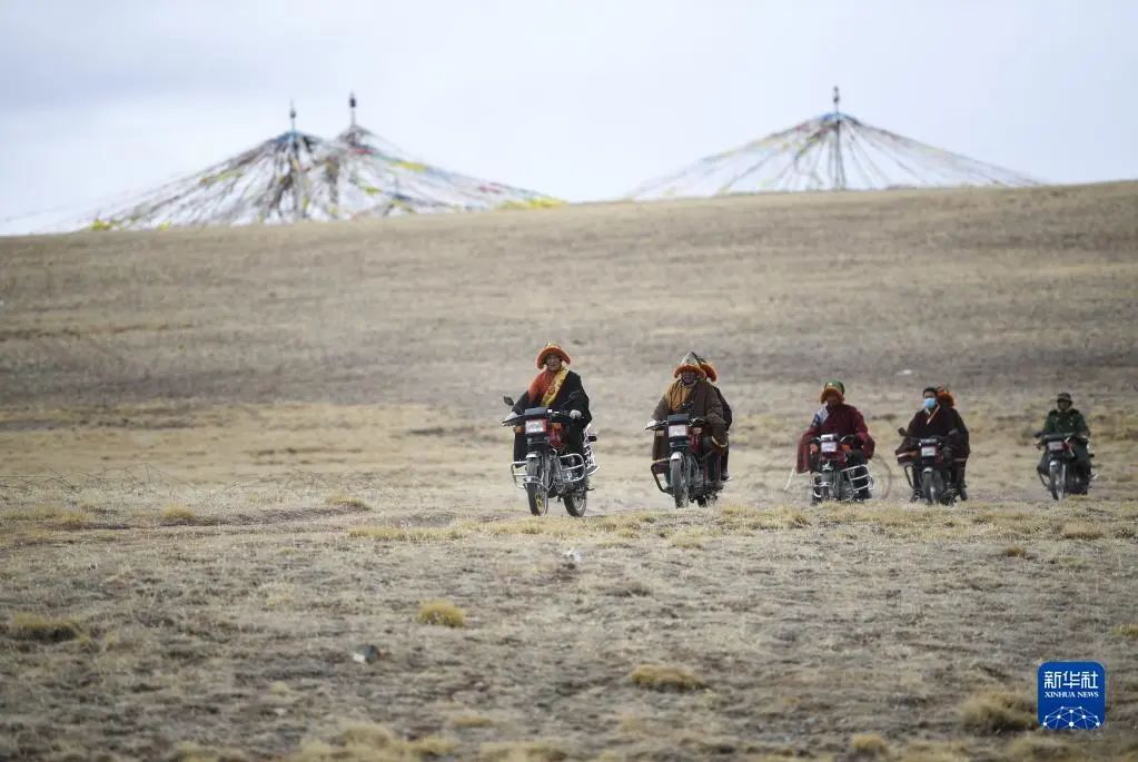 2022年4月21日,在青海省玉树藏族自治州曲麻莱县麻多乡约古宗列曲附近,生态管护员在巡护。约古宗列曲位于青海省玉树藏族自治州曲麻莱县麻多乡,这里是三江源国家公园的核心区。三江源国家公园在生态保护第一的前提下,建立“一户一岗”生态管护公益岗位机制,园区内每户有1名生态管护员,他们共同守护着一江清水。新华社记者 张龙 摄