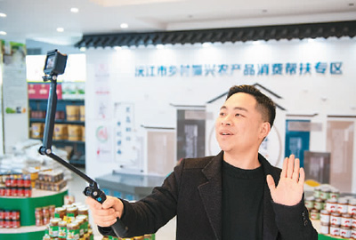 从湖南城市学院测绘工程专业毕业后,蒋连超投身乡村振兴大舞台。图为蒋连超在湖南省益阳市沅江高新技术产业园区录制短视频带货。