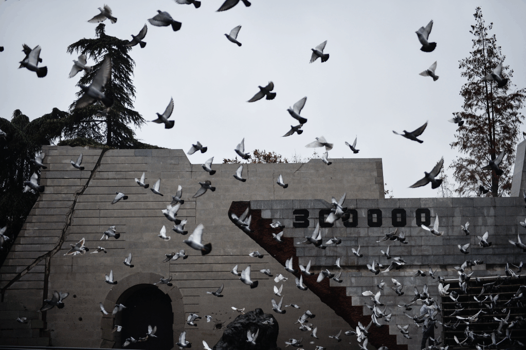 2016年12月13日,南京大屠杀死难者国家公祭仪式上放飞和平鸽。新华社记者 李响 摄
