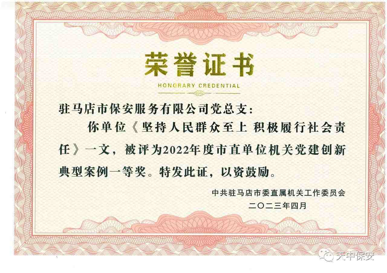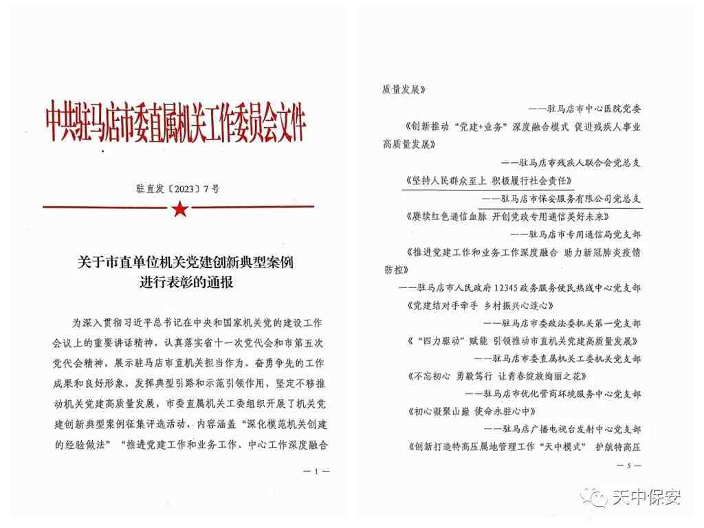 4月25日上午10时,在驻马店市直工委组织的“2023 年驻马店市机关党的工作会议暨2022年度驻马店市直单位模范机关创建工作表彰会”上,驻马店市保安服务有限公司两次走上领奖台接受表彰。