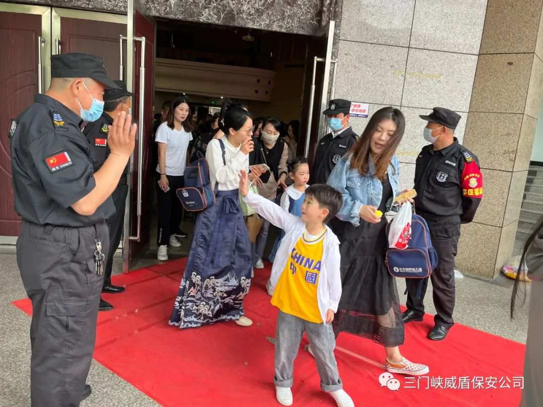 5月31日上午,三门峡召公岛幼儿园2023年“情系中国、放眼世界”六一文艺汇演活动在河南科技大学应用工程学院学术报告厅开幕,威盾保安三门峡分公司抽调四名保安队员负责维持会场出入口秩序,规范引导人员入场、文明引领观众及时就位、礼貌维护活动现场秩序。