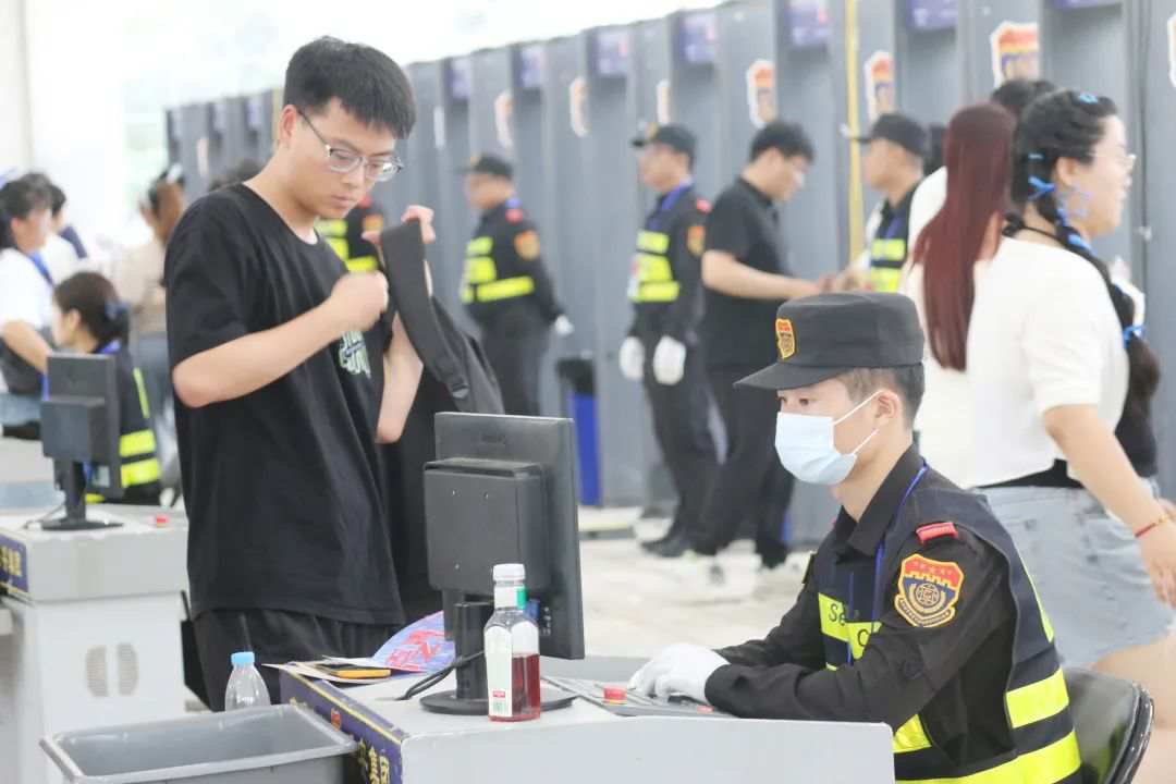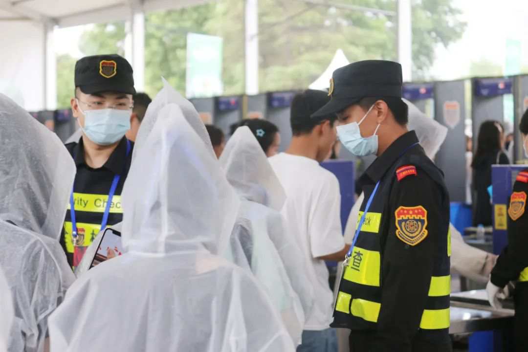 演唱会当天,安检团队提前到岗,针对周末人流量大且集中、阴雨天气人员过检易出现拥堵等特点,公司及时调整部署,全力协助主办方做好过门安检、物品检查等工作,保证了现场观众有序入场。