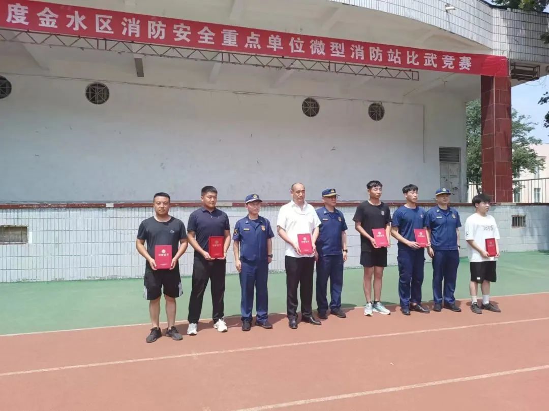 7月26日,金水区消防救援大队,成功举办“2023年度金水区消防安全重点单位微型消防站比武竞赛”;全市共60支参赛队伍、200余名消防救援人员同台竞技、激烈角逐;集团公司委派督察培训部经理张保建全程指导参与此次比赛活动。