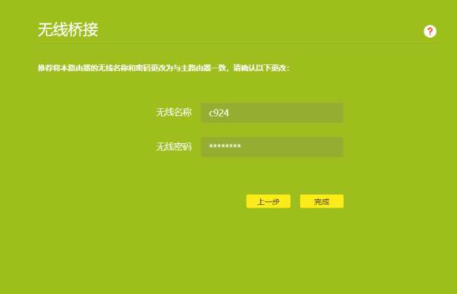 选择主路由器wifi名称,然后点下一步,输入主路由器的wifi密码(所以要记得主路由器的wifi密码)。