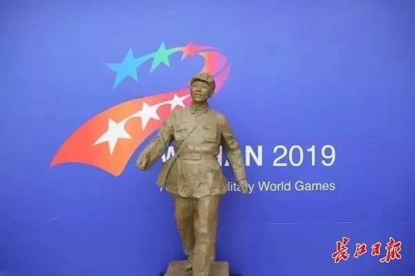 2019年武汉军运会闭幕式场馆正厅,摆放着一尊铸铜雕塑作品《雷锋》。雷锋面带微笑、阔步前行,充满朝气,展现了坚定信念、 大爱胸怀、宽阔视野,彰显了中国军人的崇高风范,体现了中国人民的天下情怀。