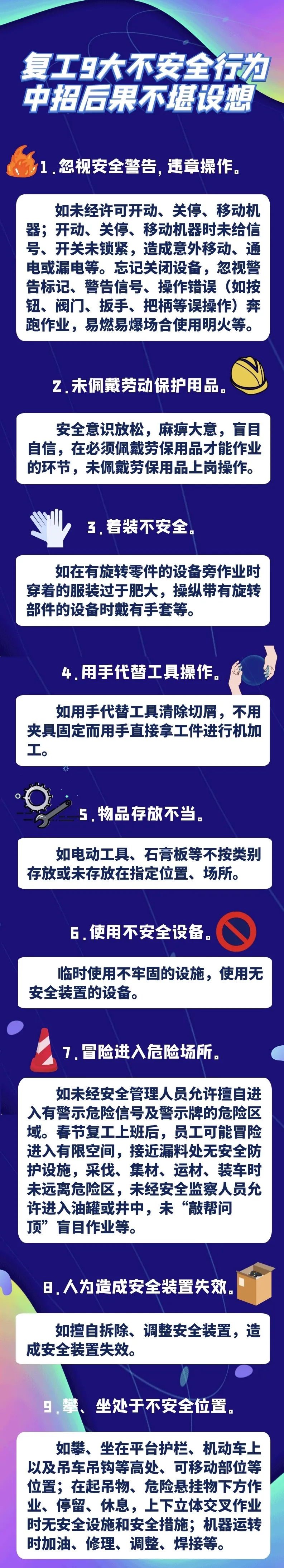 应急科普 | 图说:复工复产9大不安全行为,赶快自查