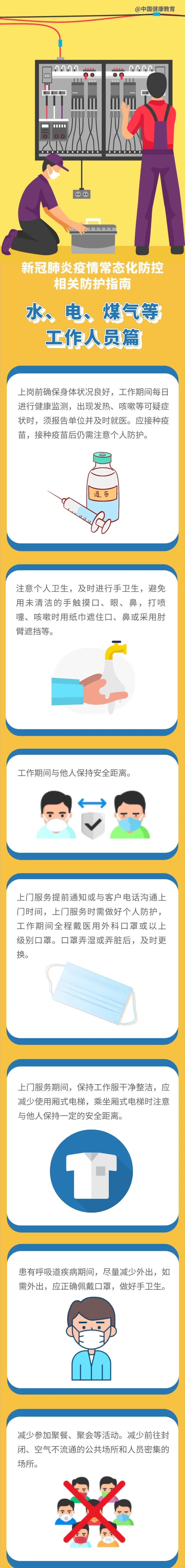 健康科普|新冠肺炎疫情常态化防控防护指南之水、电、煤气等工作人员篇