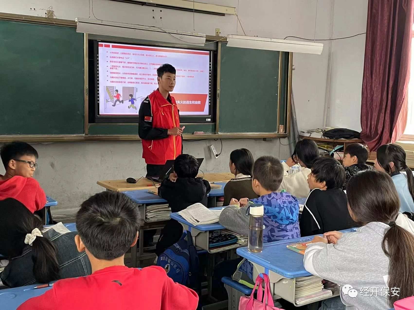 本次志愿服务活动根据拍石头小学的实际需求,经开志愿服务队为学校捐赠了衣物、学习用品和体育用品。并选派了业务扎实的消防教练为学生上了一堂消防知识科普课,普及安全用火、用电、用气等基本常识和急救技能相关知识,现场讲解了干粉灭火器的使用方法,通过直观的方式提升了孩子们的消防安全意识和自防自救能力,精彩的授课得到了师生的一致好评。