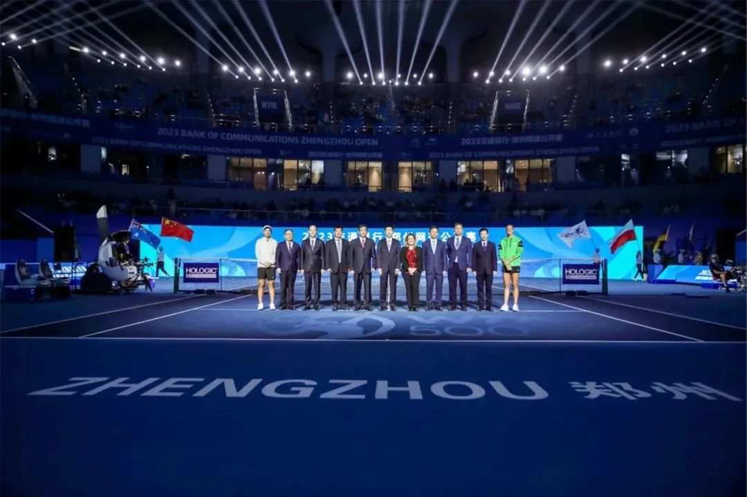 北京时间2023年10月9日下午18点30分,2023交通银行郑州网球公开赛开幕仪式于河南省体育场馆中心(东区)网球决赛场举行。此次比赛由国家体育总局网球管理中心、中国网球协会、河南省体育局、郑州市人民政府主办,河南省体育场馆中心、郑州市体育局、郑州市郑东新区管委会承办。中央球场,群星璀璨,网坛名将,齐聚中原。受活动主办方邀请,河南华威保安集团公司为比赛提供安保服务。