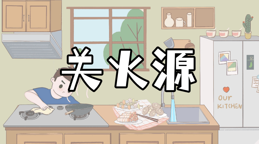 厨房用火不离人,离开时必关火。在使用各类火源时要与家具、衣物等保持安全距离,不在电暖气上覆盖晾烤衣物,不使用“小太阳”等高危取暖设备。